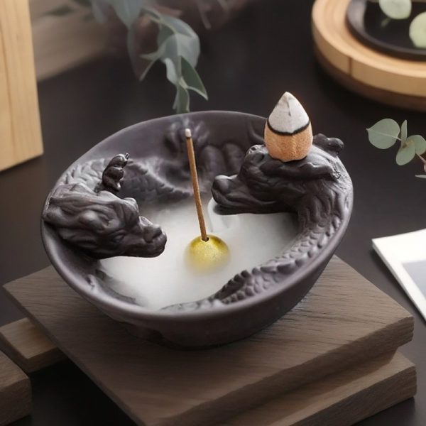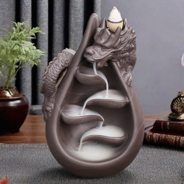 Indulge in the mystical ambiance created by the Antique Handmade Purple Clay Cascading Dragon Backflow Incense Burner, a masterpiece designed to transform your space with its enchanting smoke flow and artistic presence. Crafted meticulously from high-quality purple clay, this incense burner features a majestic dragon that is not only a symbol of power and wisdom but also an artistic tribute to traditional craftsmanship. The intricate details on the dragon’s body and the smooth, flowing curves mimic the serpentine movements of these mythical creatures, adding a dynamic quality to the piece. This incense burner is equipped with a backflow mechanism, where the smoke cascades downwards in a mesmerizing waterfall effect, pooling around the curves of the burner in a delicate, ethereal manner. It is perfect for use in meditation rooms, on desktops, or as a central piece in your living room, offering not just a visual treat but also a way to diffuse aromatic scents that purify the air and soothe the mind.