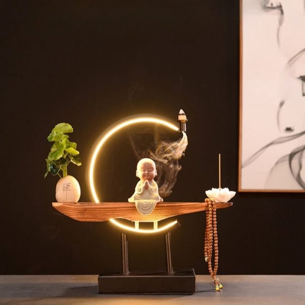 Crafted from high-quality ceramic using traditional techniques, this incense burner is not only a functional piece but also a stunning work of art. The warm LED light highlights the fine details of the Buddha’s expression and the delicate petals of the lotus, offering a calming glow that enhances your relaxation and meditation sessions. The smoke flows smoothly and effortlessly, symbolizing the journey of tranquility amidst the chaos of life.