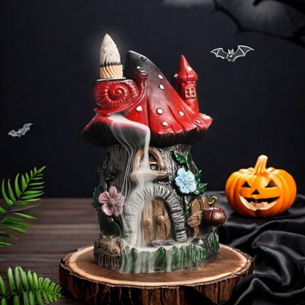 The Halloween Mushroom House Resin Backflow Incense Burner is not just a decorative item; it’s an experience. Its detailed craftsmanship brings the mushroom house to life, making it a captivating centerpiece for any room. The soothing scent of the incense coupled with the visual appeal of the smoke’s gentle flow creates a calming environment, helping you unwind and relax. Imagine the soft curls of smoke flowing like a gentle stream, enhancing your Halloween decor with a mystical touch. This burner is versatile enough to be used throughout the year, bringing a fairy-tale charm to any occasion.Crafted with attention to detail, the vibrant colors and intricate designs of the flowers and foliage add to the visual appeal, making it a standout piece in any setting. The durable resin material ensures longevity, allowing you to enjoy its beauty and functionality for years to come.