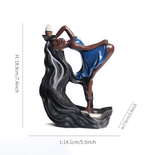 This Resin Dancing Girl Incense Smoke Backflow Waterfall Burner Holder for Valentine’s Day has about 7.4 inches high , a width of approximately 2.9 inches and a length of 5.5 inches , providing a substantial presence suitable for any space.